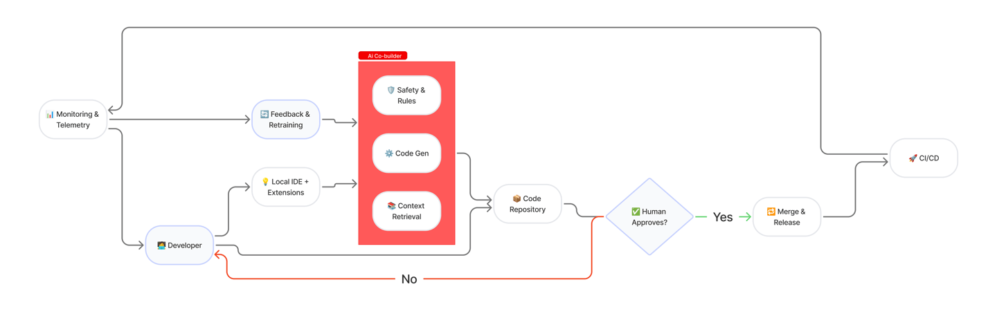 Our human-in-the-loop AI model speeds up coding and automation, while senior engineers ensure secure, compliant, and scalable enterprise-ready software solutions.